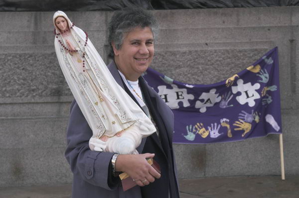 london on a saturday. a walk in the park, a demonstration against child