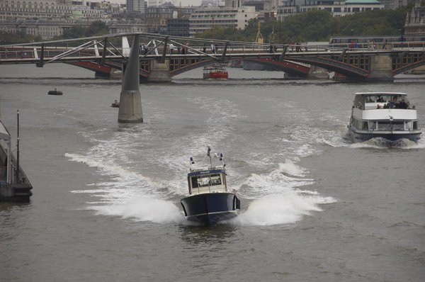 ![]() Portwey's tunnel lowers for the bridge, but it lifted to allow her and another vessel to pass. ![]() London Bridge City ![]() A police launch shows a turn of speed . |