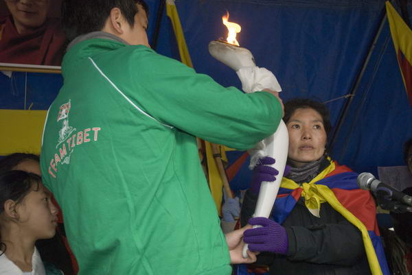 ![]() The torch was handed to Ngawang Sangdrol , one of the Drapchi nuns |