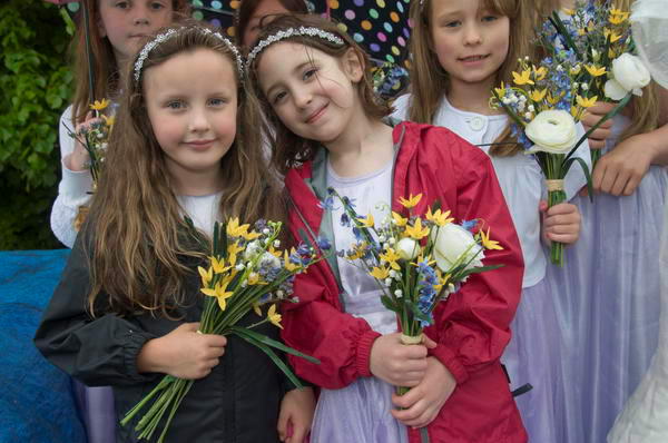 The procession then carried on around Hayes, past the station and up the hill back to the common, where the May Queen was crowned in a ceremony devised by Deedy including the Month of May, Woodland Call and contributions from the Fairy Queen, Bo-Peep, Robin Hood (who issued a challenge, throwing down her gauntlet) before the crowning and the Royal Speech.