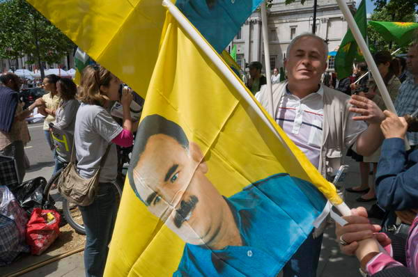![]() Kurds with Ocalan on their flags |