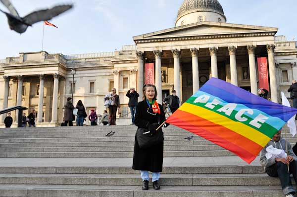 Among the zombies was Peter Tatchell, who along with many of the others there was intending to continue to Trafalgar Square and the silent candlelit 'Hate Crime Vigil' over the increasing number of homophobic attacks in London, and in particular the brutal attack there on September 25 that killed Ian Baynham.