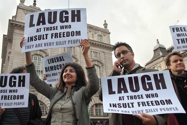 Although the organisers of the MARCH4SHARIAH had issued a press release the previous day announcing the cancellation of their proposed march "unique march in Central London which aimed to highlight the superiority of the Shari’ah over that of British democracy and man-made law", two groups of demonstrators still turned up at Piccadilly Cricus on Saturday to show their opposition.