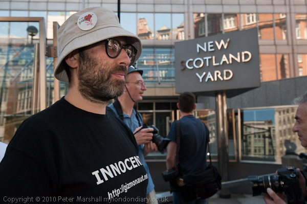 ![]() Holding up the 'I'm a photographer not a terrorist!' card at New Scotland Yard ![]() ![]() ![]() Posing for the man from Reuters ![]() Very hard to get more than one flash firing in a picture ![]() |