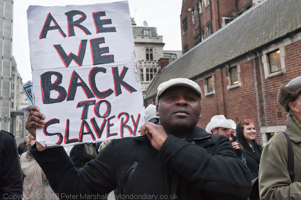 'Are we back to Slavery' asked one placard