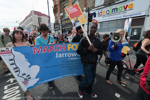 A banner of the Jarrow to London 2011 'March for Jobs'