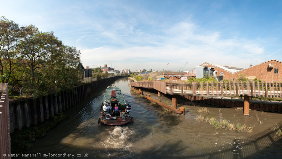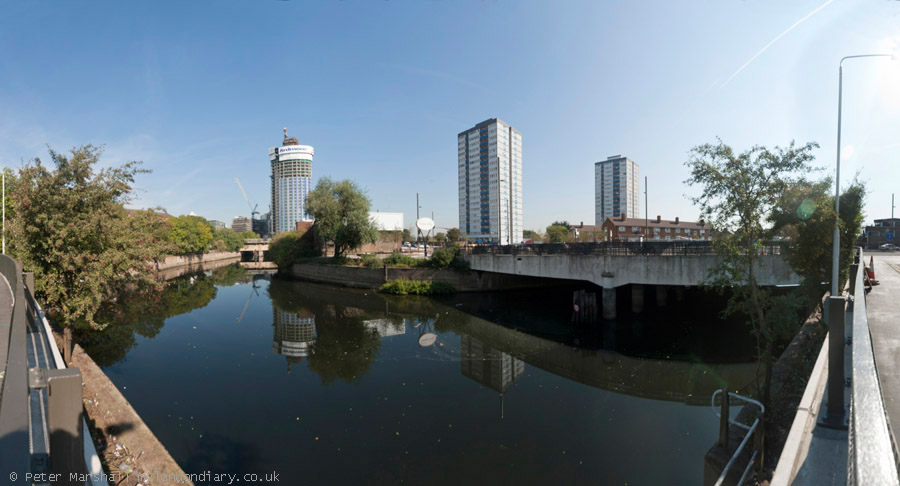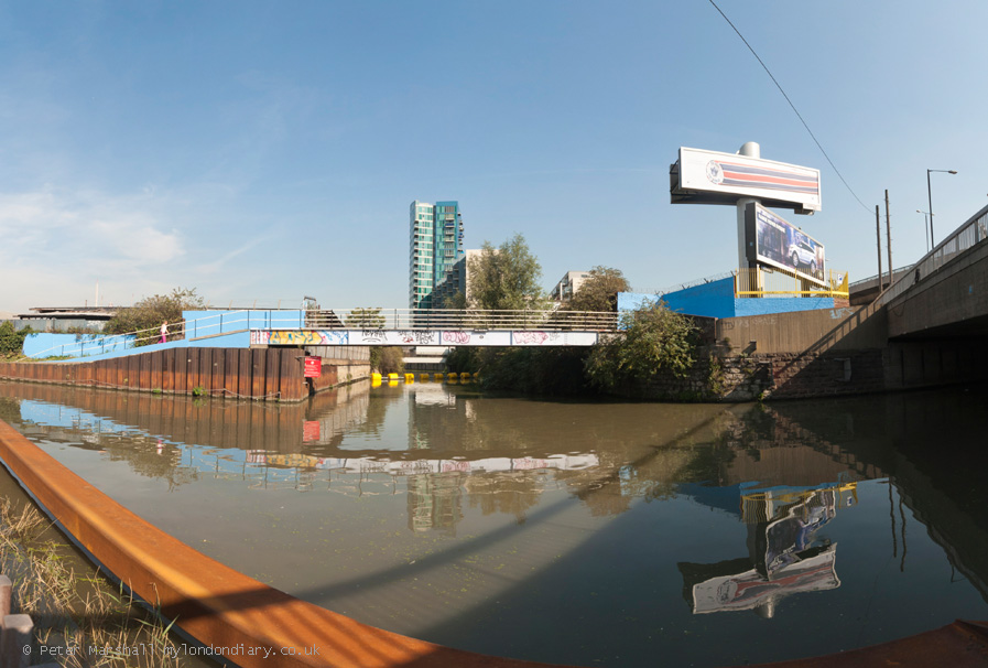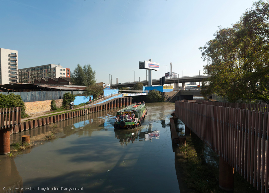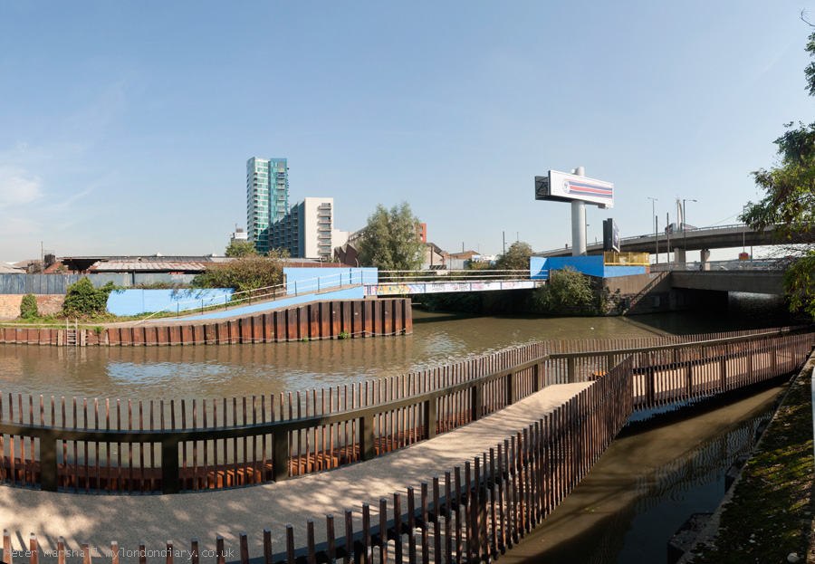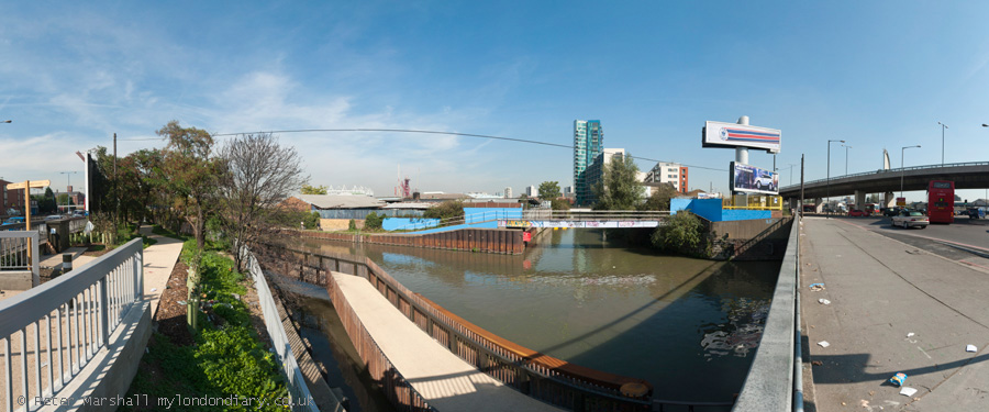 This was the first time I'd used the new footway along the west side of the Navigation under the Bow Flyover. St Thomas Creek in the centre of the picture