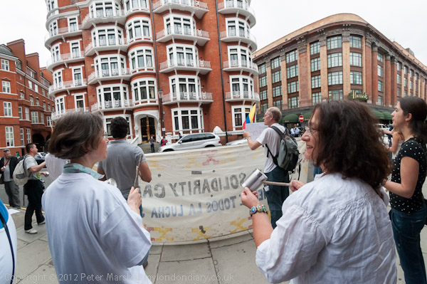 ![]() ![]() ![]() ![]() ![]() Police talk to the protesters and read the leaflet ![]() ![]() The building also has the Ecuadorian embassy |
