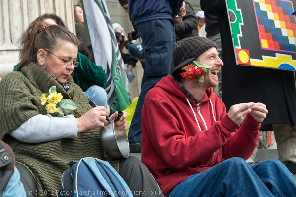 The celebration of a year since the occupation started with meditation on the steps