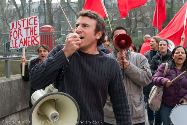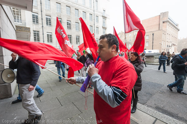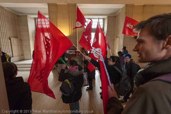 The protesters, many carrying IWGB flags walked towards the Senate House entrance