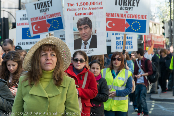 followed by the people with placards about the Armenian Genocide