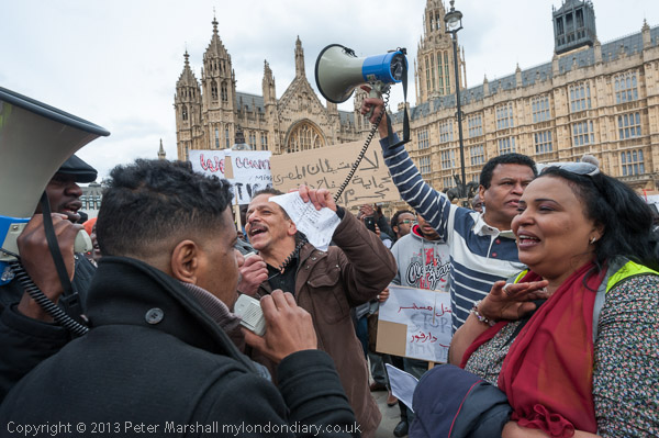 ![]() The protest pen was just a few yards west of the Embassy ![]() ![]() 'Life without freedom is like a body without soul' ![]() ![]() ![]() ![]() I left the protest at this point and went to photograph another event, returning when the protesters were holding a rally in Old Palace Yard |