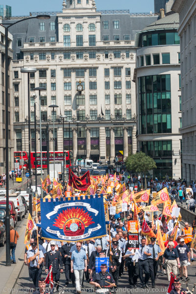 I'd gone up onto the top of the fire engine not realising I would not be able to get down until the march ended