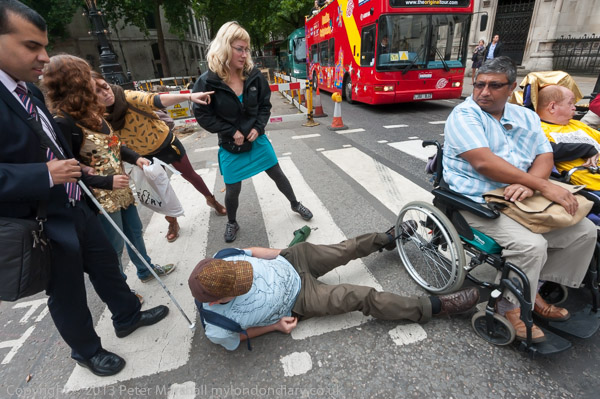 wheelchairs who were still blocking the road consulted with each other