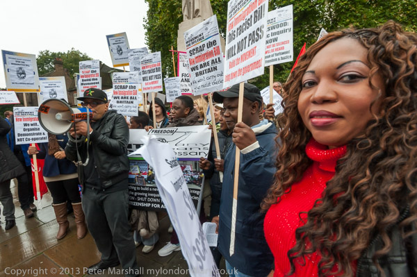 Representatives of many of these families, and some others were on today's march along with their supporters. As in previous years it gathered on the edge of Trafalgar Square before making its way down Whitehall at a funereal pace behind the main banner. Among those holding this were Stephanie Lightfoot-Bennet, twin sister of Leon Patterson, murdered by Manchester police in 1992 and Carole Duggan, the aunt of Mark Duggan whose shooting by police sparked riots in August 2011.