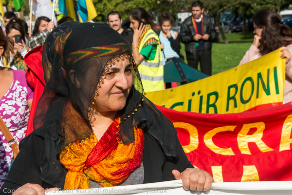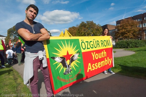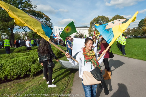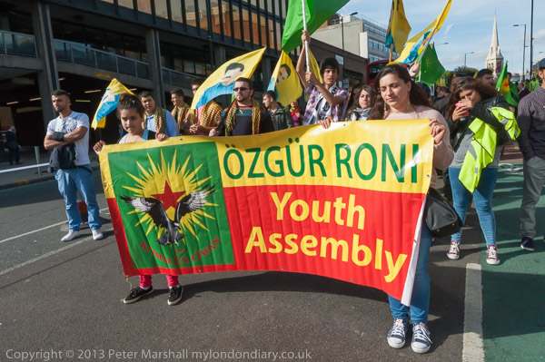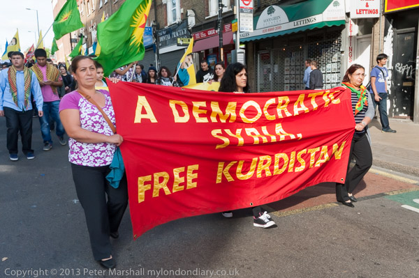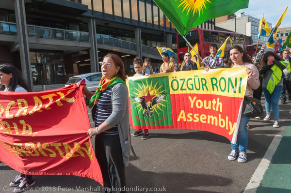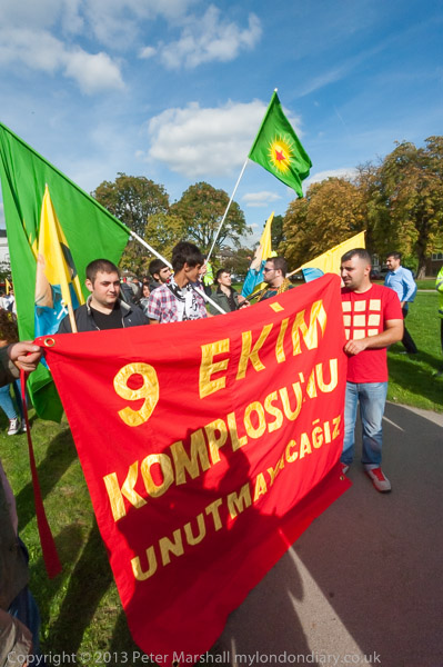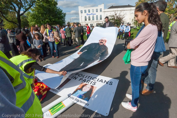 The banner with pictures of 'Three Kurdish Politicians Murdered in Paris' - three women activists shot in the PKK offices