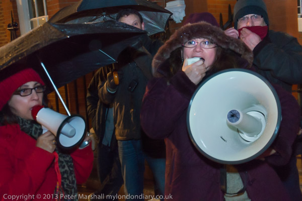 and say they could be a lot quieter if they were actually allowed to protest outside the embassy rather than on the other side of the road