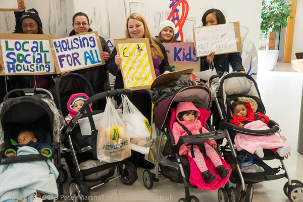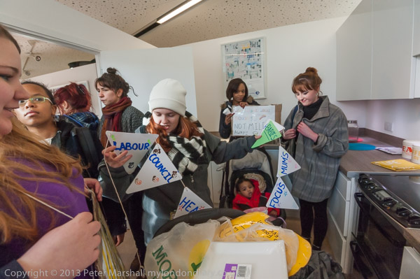 Focus E5 Mothers Party Against EvictionEast Thames Housing Assn, Stratford, London. Fri 17 Jan 2014 |