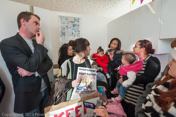 Focus E5 Mothers Party Against EvictionEast Thames Housing Assn, Stratford, London. Fri 17 Jan 2014 |