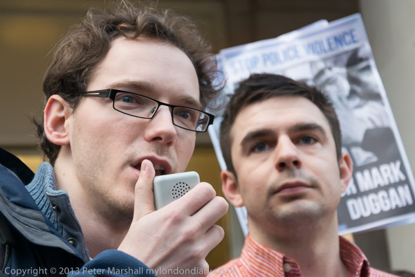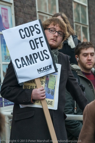 Many of the students had placards calling for Justice for Mark Duggan, and there was a banner