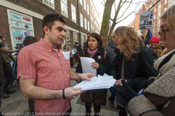 ULU Vice-President Daniel Cooper hands out maps showing some of the places for the protest