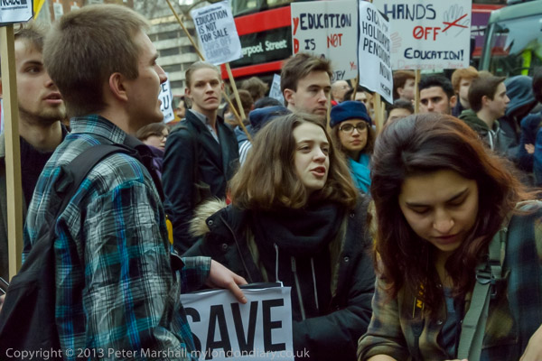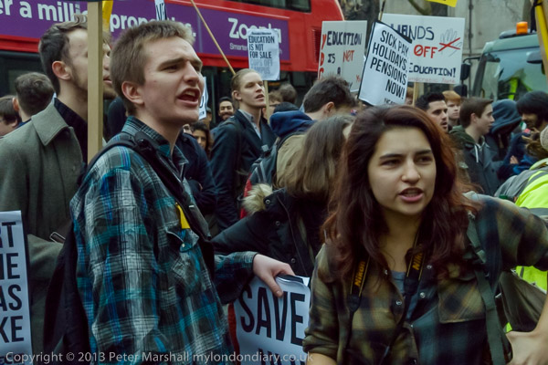 I leave, and watch perhaps half of the students marching on towards the opera house in Covent Garden
