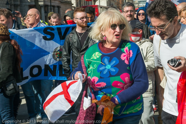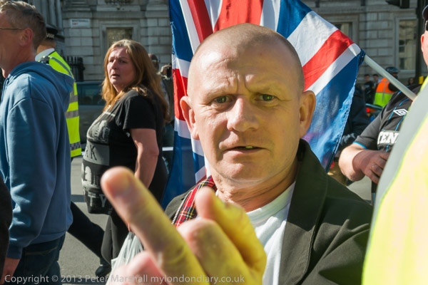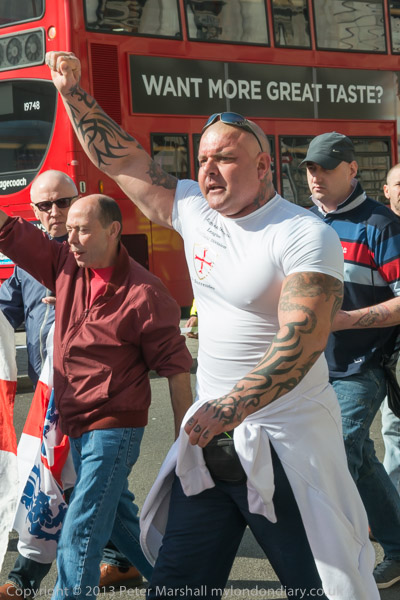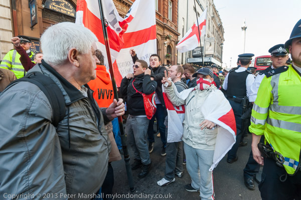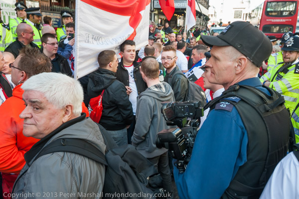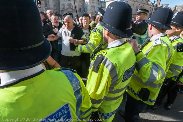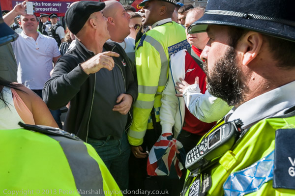 EVF make an attempt to rush towards the counter protesters but police and stewards hold them back