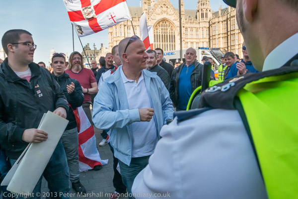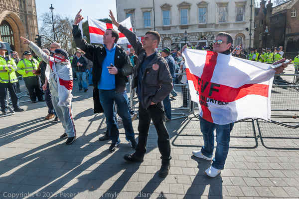 As I left, a small group of antifacists who had evaded the police were walking towards the EVF protest