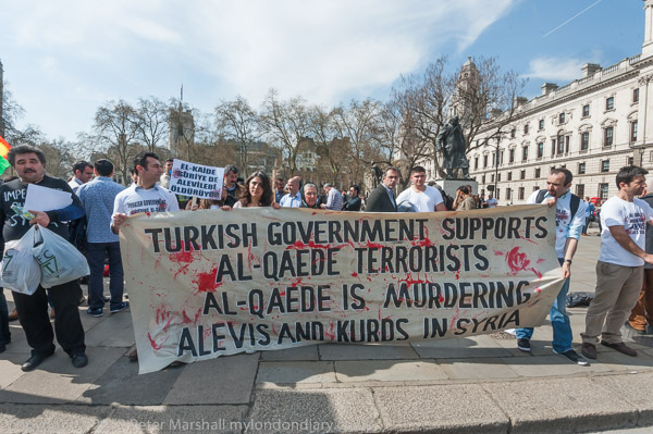 Protesters arrive early for their protest in Tragalgar Square against the killing of Alevis and Kurds in Syria