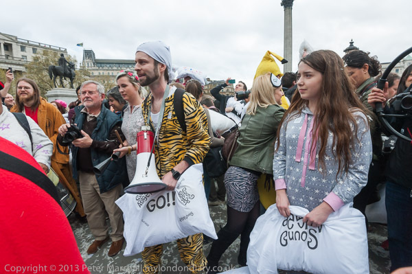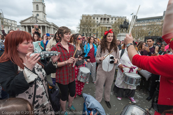 The Samba band on the North Terrace of Trafalgar Square which had been closed off to stop the event