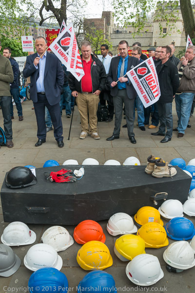 a minutes silence was observed for workers killed on buidling sites and elsewhere