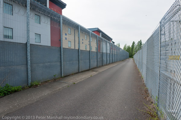Harmondsworth on the left, BT property befhind the lower fence to the right
