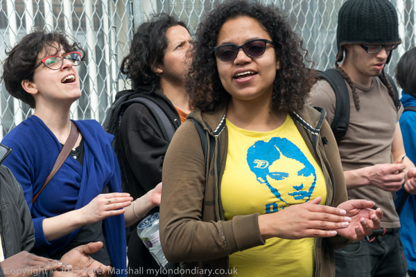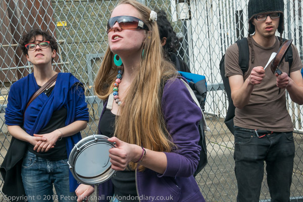 on mobile phones. After a long and noisy protest, the protesters moved around the the back of the prison