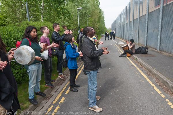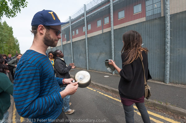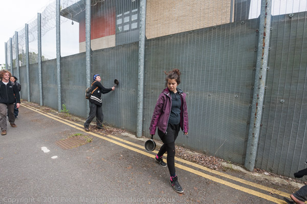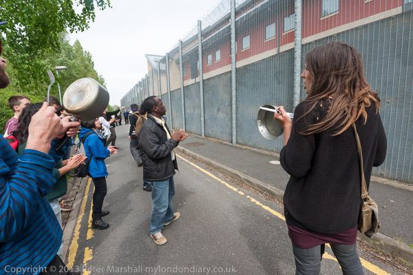 needed a very long lens. But there was a clearer view of the detainees waving back, and we heard phone calls from some of them
