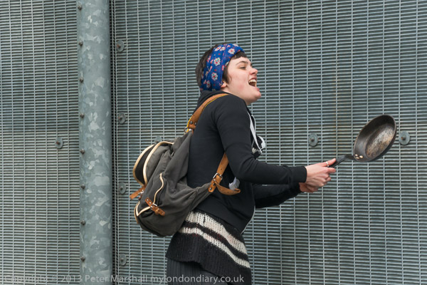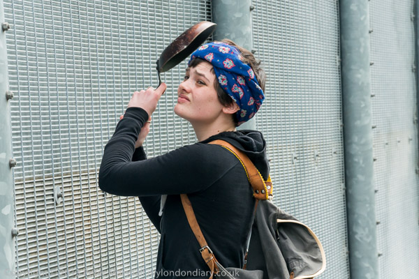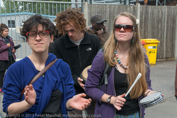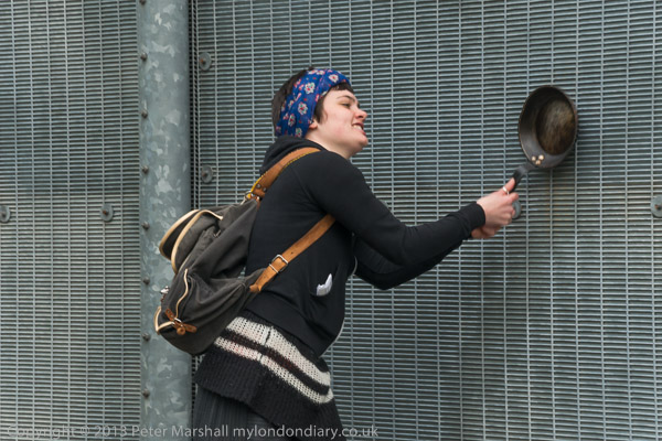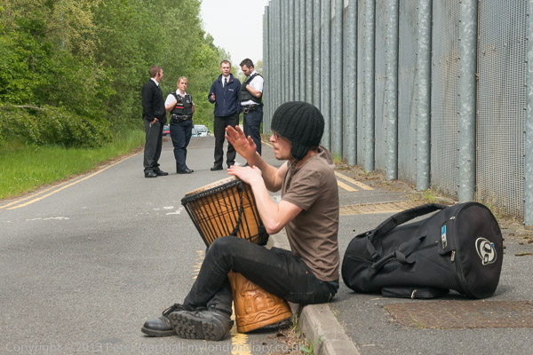 In the corner behind the protesters are the kennels for the airport police dogs, who were apparently disturbed
