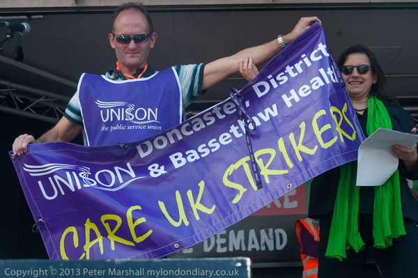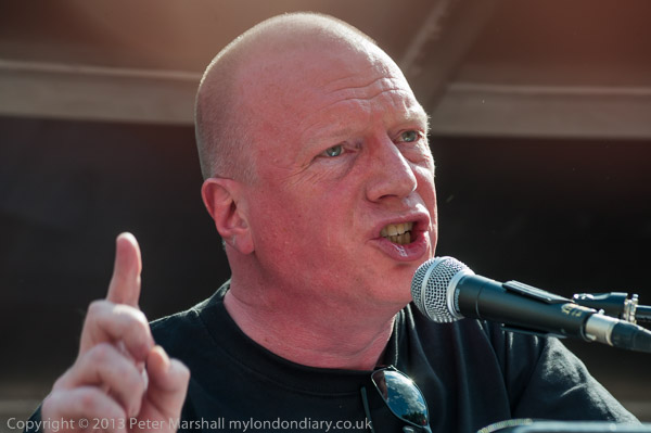 ![]() Roger Hutt, Unison shop steward from Doncaster where the strike at the Health care company he is legally ![]() gagged from naming was then on day 34. It is a fight to retain quality of care in the health service ![]() And a Unison worker with a banner from the strikers ![]() came and stood on the platform as he spoke ![]() Ian Lawrence of NAPO speaking on their fight against privatisation of the probation service ![]() ![]() Luftur Rahman, Mayor of Tower Hamlets is rightly proud of his record - the first living wage borough, the have ![]() continued EMA payments, given students a £1500 grant, provided free home care and more. ![]() Its hardly suprising he has come under attacks from the establishment and the right-wing press, with a ![]() truly scurrilous attack from the BBC shortly before the Mayoral election - which he won by well over 3000 votes in the second round. |
