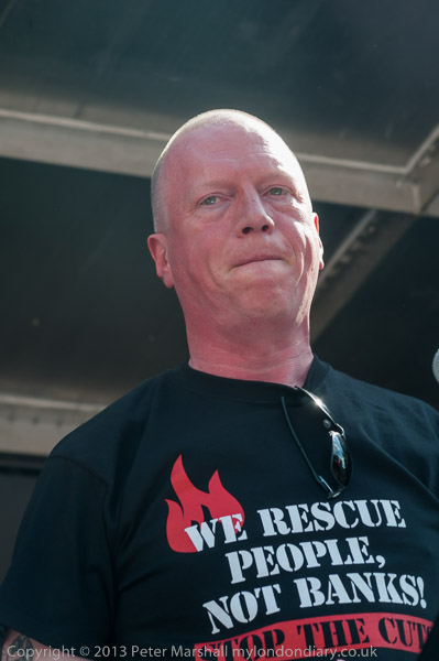 ![]() Lindsey German was almost hidden by the lectern, but her voice came over strongly ![]() Kate Hudson, CND ![]() ![]() Matt Wrack, FBU explains the message on the t-shirt he and many other FBU members were wearing ![]() 'We Rescue People Not Banks' was the response of Spanish fierfighters in Valencia in 2012 when they were asked to evict people from their homes ![]() ![]() |