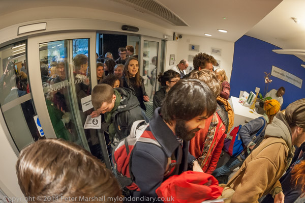 before going back to the discussion. Then there is more noice,as the UCL students try to get in through the main door