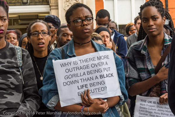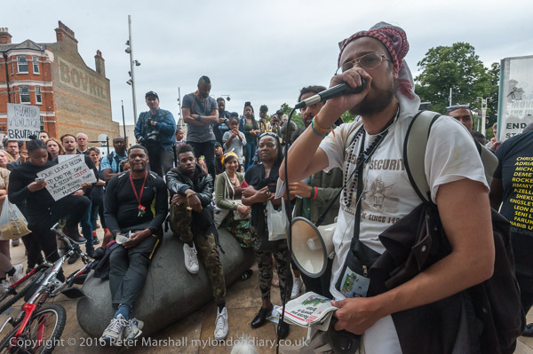Later people marched through the high street up to Brixton Police station and protested there. I'm