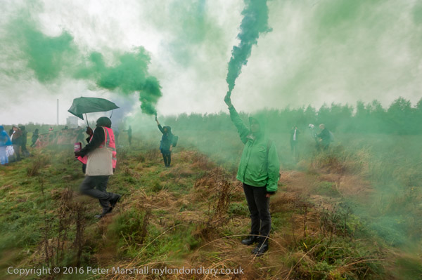 Sisters Uncut and others set off flares on the hill facing Yarl's Wood immigratin prison