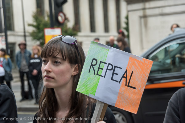 A placard in the colours of the Irish flag calling for repeal (of the 8th amendment.)