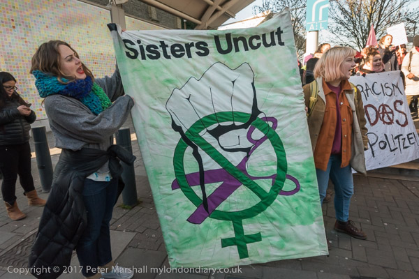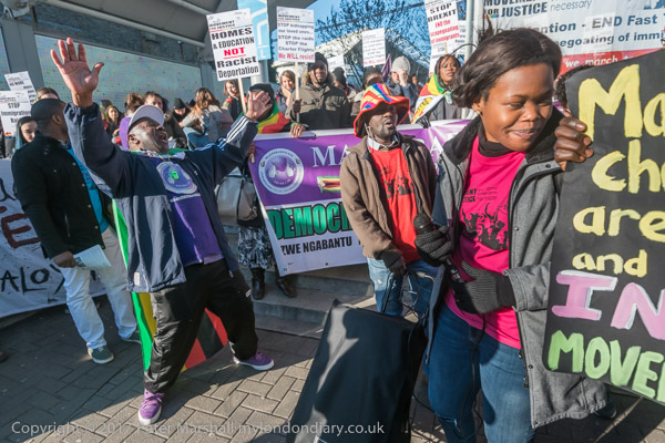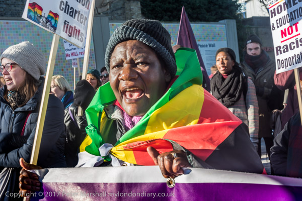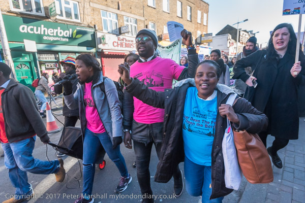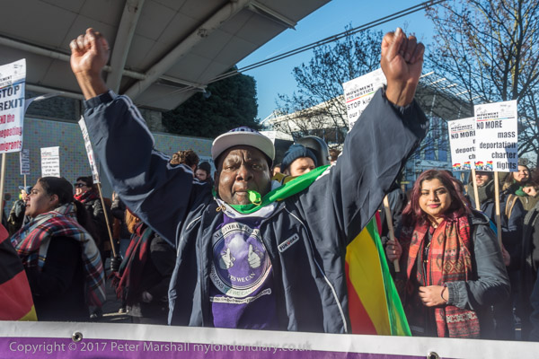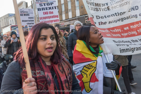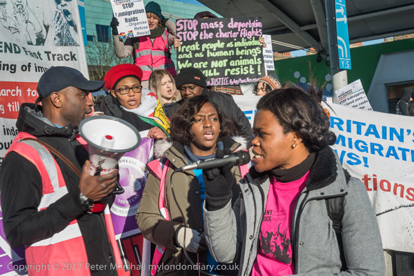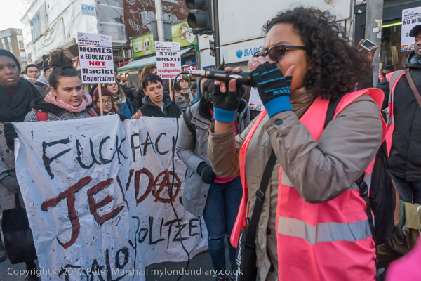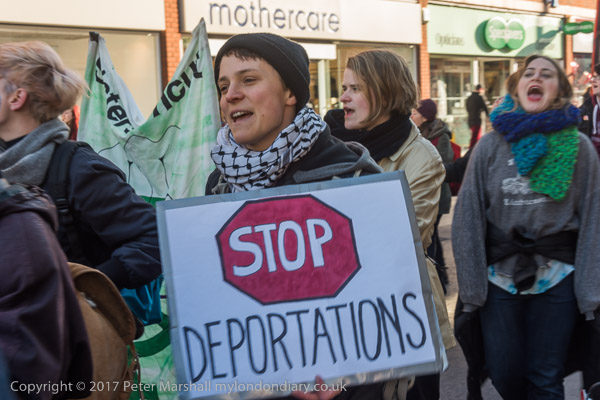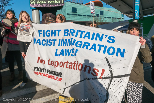 The FRFI banner 'Fight Britain's Racist Immigration Laws! No deportations!'
