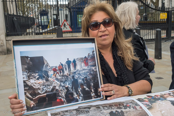 The protest, organised by RefugEase and Syria Solidarity Campaign calls on the UK Government to protect civilians in Syria and to support Syrians as they struggle to survive against a regime determined to exterminate them.
