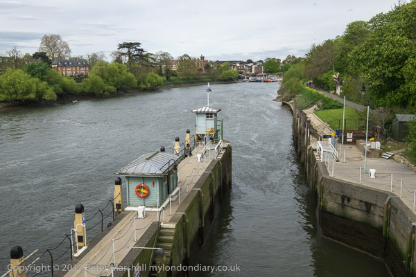 Richmond lock from the bridge, with Isleworth in the distance