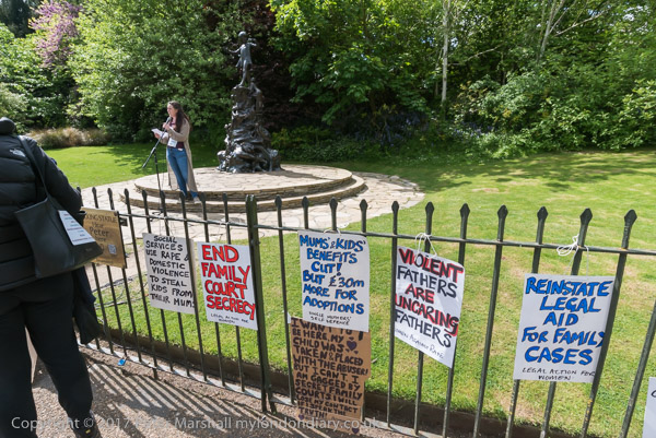 Sir Benjamin Slade poses with campaigners and victims of family courts