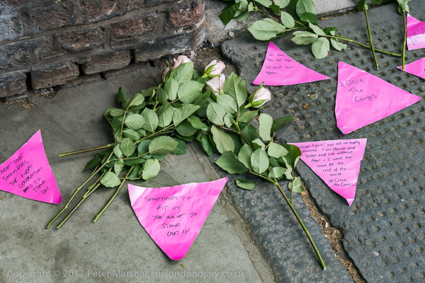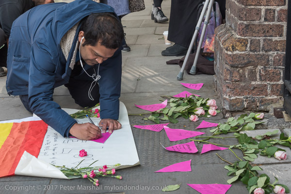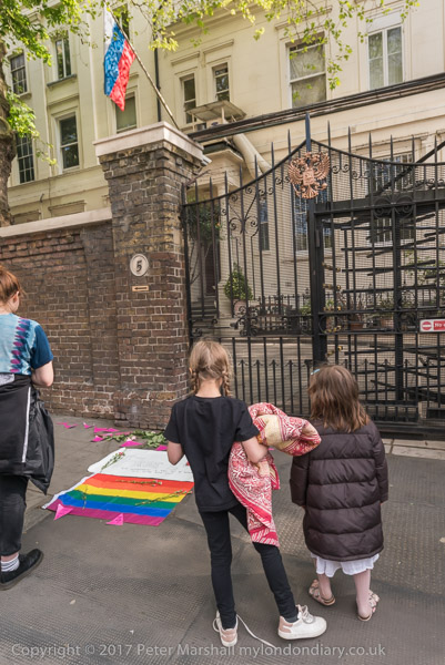 Setting up a pavement shrine outside the Russian Consulate in Kensington