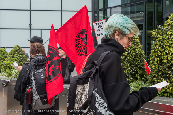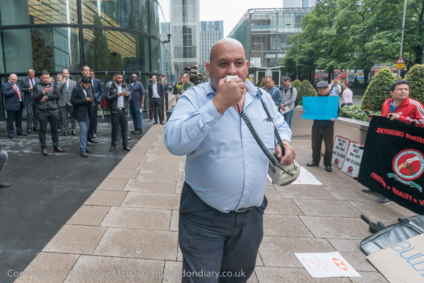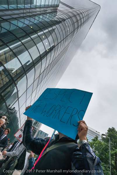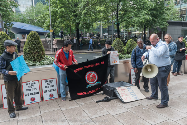 In between speaking the cleaners shout against the HSBC cuts and blow
