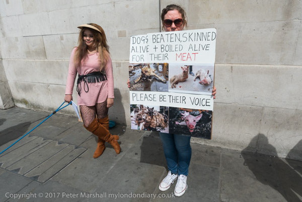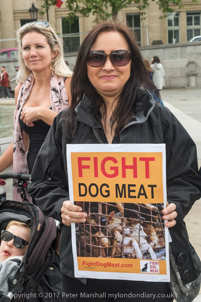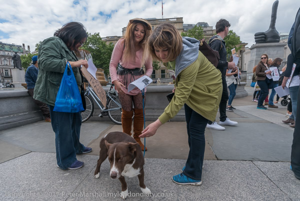 People, some with dogs, met up in Trafalgar Square but had to move to the