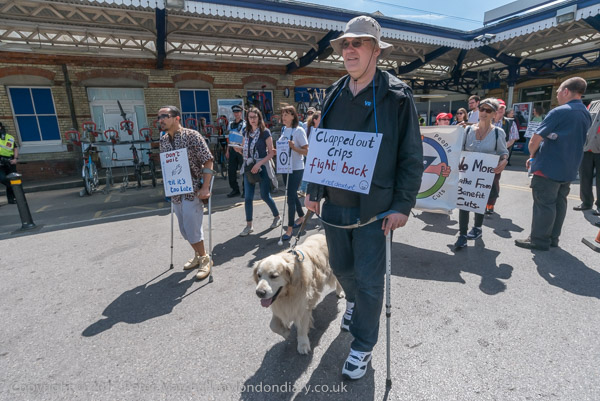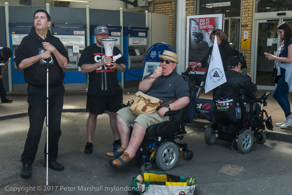 Roger Lewis of DPAC speaks, followed by other disabled protesters