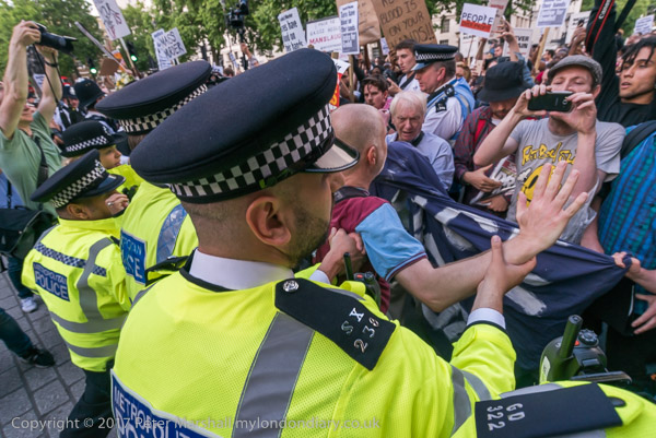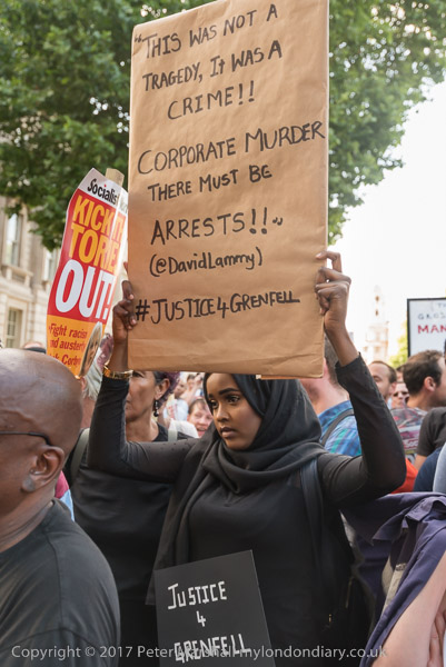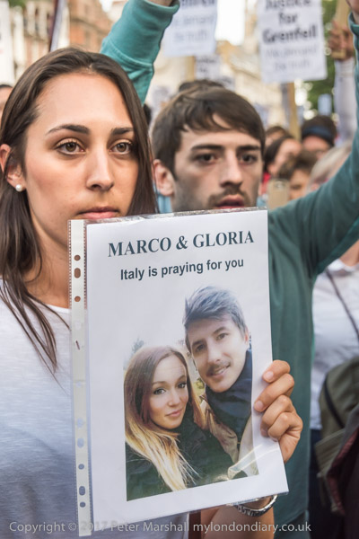 The Justice 4 Grenfell banner is carried past Parliament and up to